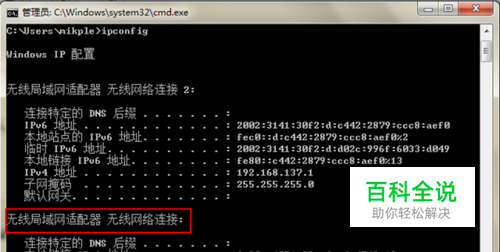 查看电脑的ip dos命令行->cmd 输入ipconfig 因为本机使用的无限局域网1,所以应当查看标记处的ip,为 49.65.48.242,等会要在手机端设置ip为这个。