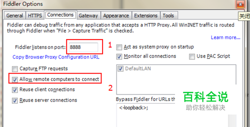 设置fillder,监听8888端口,允许远程连接 fillder--->tools—>fillder options