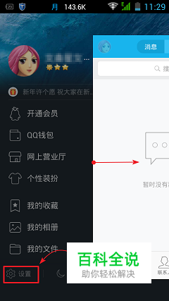 我们不能用常规的方法来退出当前的账号,而是采用删除账号的方法来退出,这样就会保持连续登陆。 打开QQ界面,向右拖动 打开菜单,再点击“设置”。
