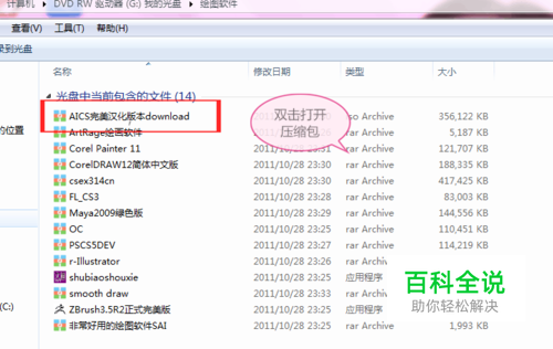 插入光盘后点击电脑DV驱动,找到电脑所读取的光盘数据。这是就可以找到驱动程序了。如图第一个压缩包解压打开。