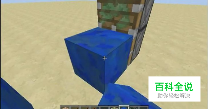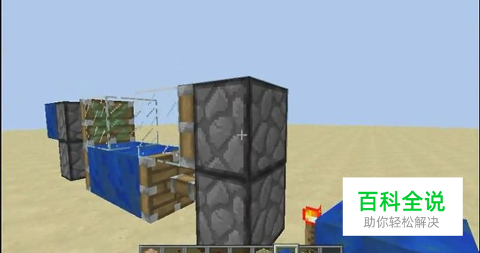 把两个方块一个放在两个方块高度,一个放在地上旁边两个方块距离处,如图所示。可以用任何材料(只要是固体就行)。
