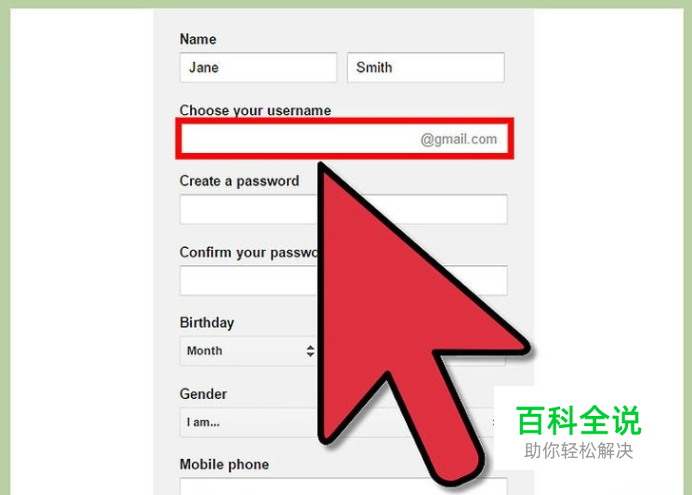 设置一个用户名。你的用户名会成为你新的谷歌邮箱地址。最好同时准备好备用或其他待选的用户名,以防你想使用的用户名已被人占用而无法注册。如果你的用户名无效,谷歌会给予您几个类似的用户名来供您选择,或者你可以尝试其它不同的用户名来申请账户。
