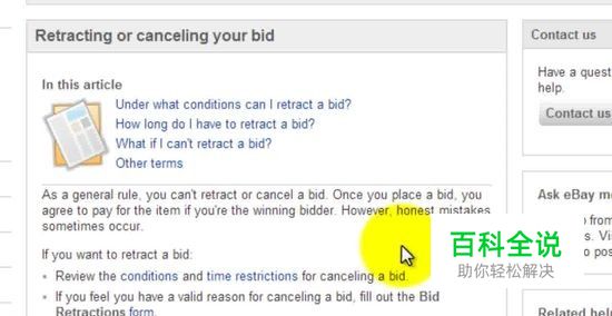 如果您无法使用表格取消出价,尝试联系卖方。卖方可能酌情决定取消您的出价,很多卖家比较善意,会取消您的出价。 尽快联系卖家,并记住,是否取消您的出价是由他们决定的。 如果卖方不希望取消您的出价,而您赢得了这个项目,根据法律您必须购买此项目。 这不会影响您的反馈评价。然而,“收回竞标”一行将被添加到您的反馈页面,如果取消投标过于频繁,卖家可能会阻止您将来的投标。