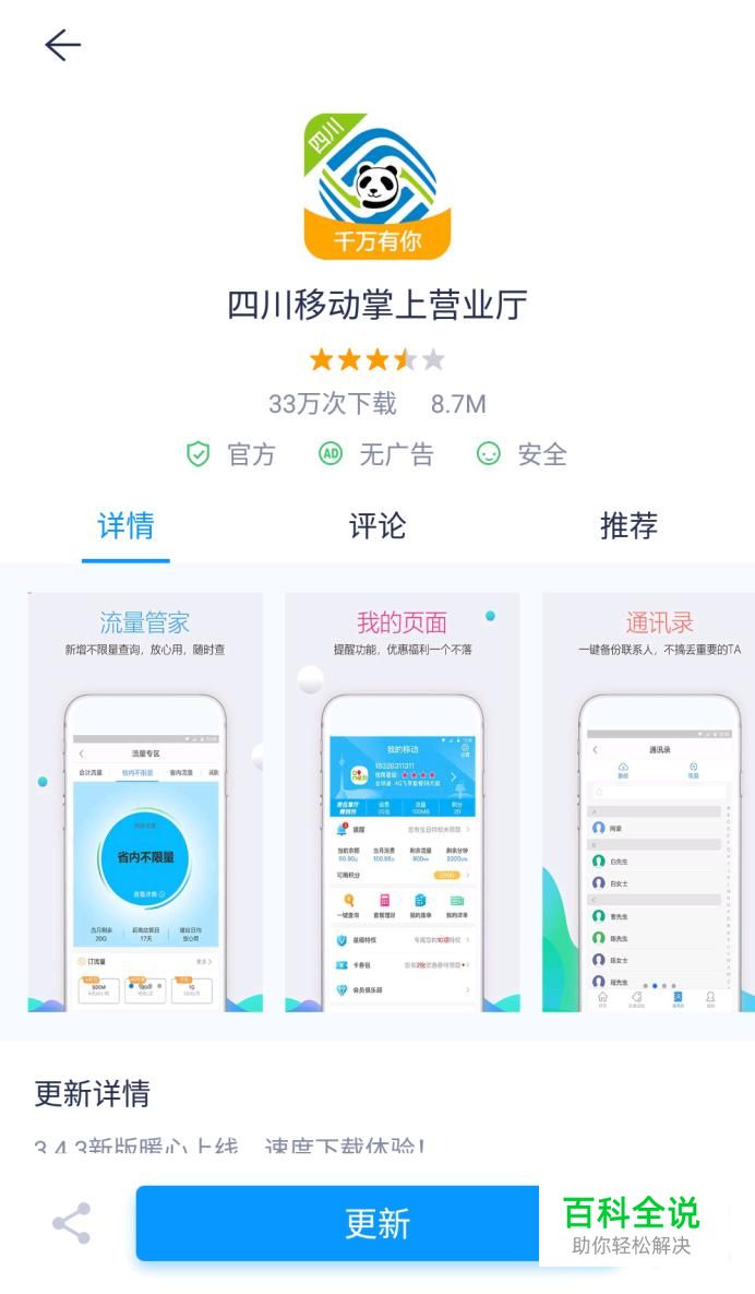 由于本人用的是移动网络,所以以移动为例。首先在手机应用商店里搜索自己所在地方的掌上营业厅,我的是“四川移动掌上营业厅”,下载并安装好后,点击进入“我的”页面。