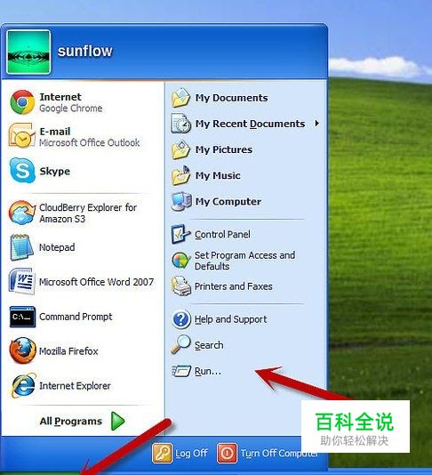 点击屏幕底部的开始,然后点击运行。您也可以按着开始键的同时按R键。