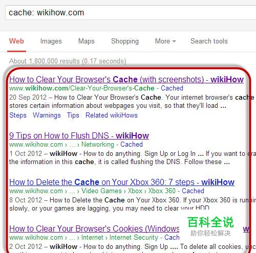 在搜索栏中,"输入 cache:website.com"(不输入双引号),其中website是网站名称,然后按回车。