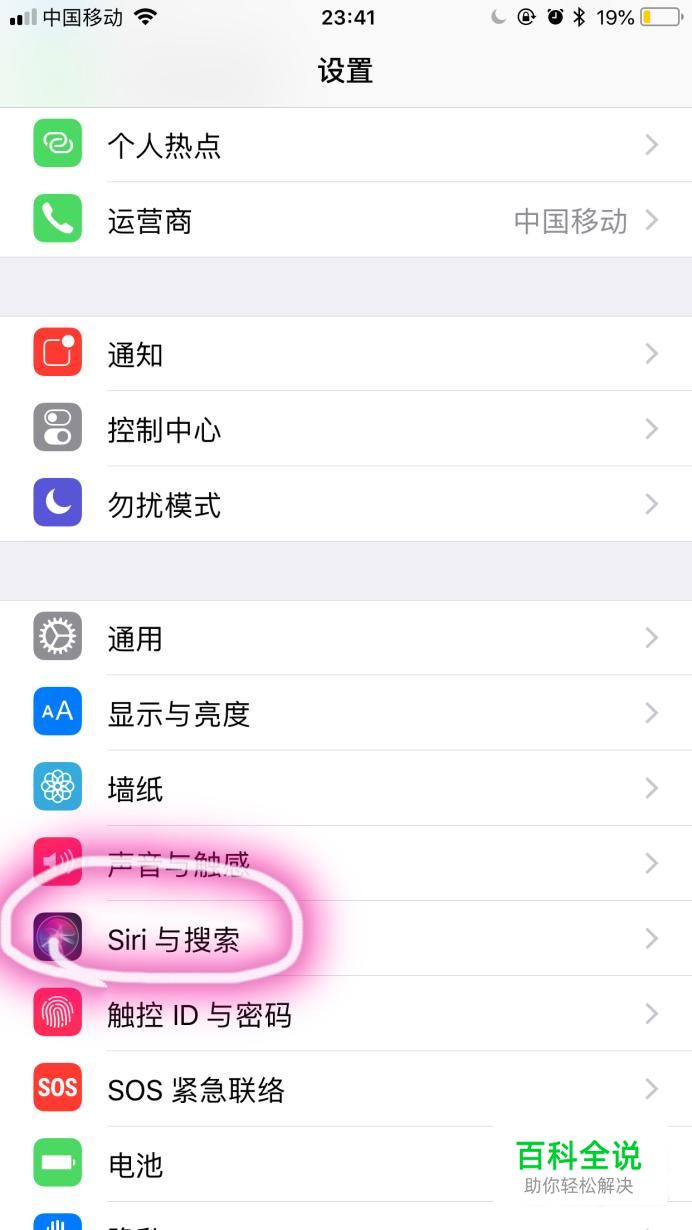 进入之后我们在设置列表中找到“Siri与搜索”,点击进入