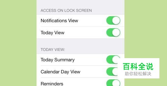 在"查看行事历"部分,点击"股票"旁的滑动棒,让其不再显示为绿色。这将关闭股票小工具,让其不再出现在通知中心。
