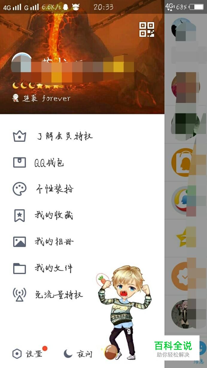首先登录手机扣扣,然后在主界面右滑,会出现如图所示栏目。