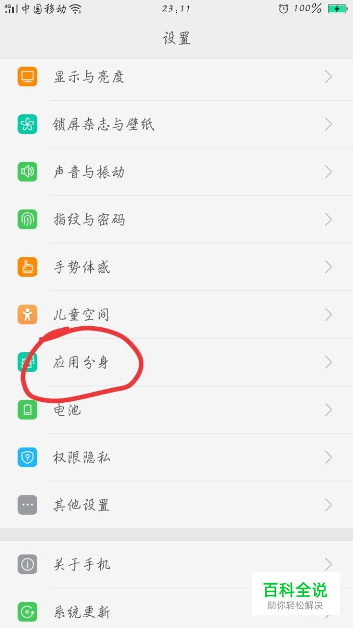 打开手机的设置,找到设置中的应用分身,点击进入。