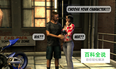 游戏的刚开始是一段动画,不过这个动画和仙剑五的一样,是静态的画面,配上声音,画面看上去还是不错的,(可小编真心想说,您老就不能把他做成动画吗,干嘛是单薄的图片)内容应该就是说一对男女为了地盘和地头蛇老大比试摩托车的故事,动画最后让你选择使用男主还是女主(当然小编选择的是女主)。