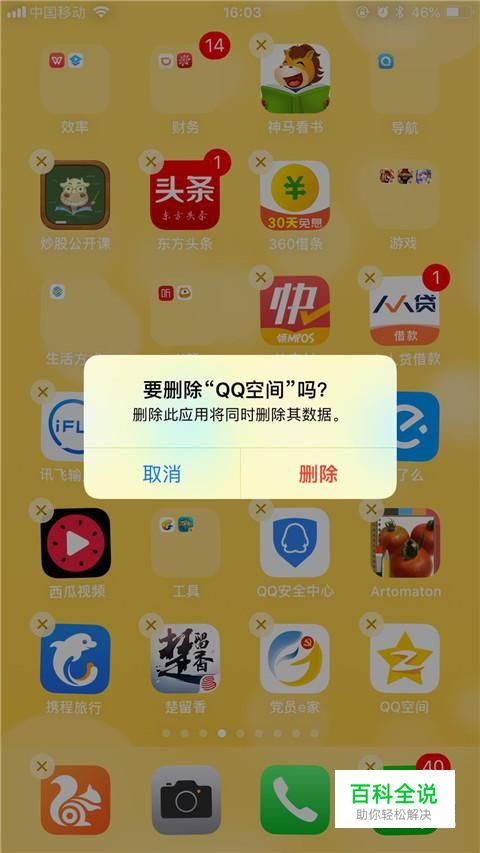 首先将我们手机桌面上的QQ空间app删除,如下图所示。
