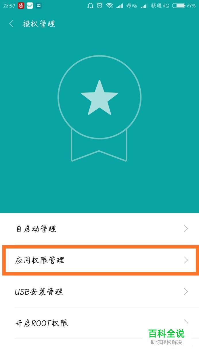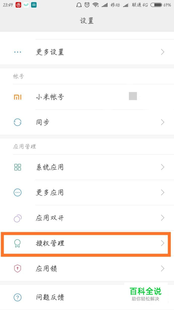 进入手机设置,在应用管理类别中找到授权管理,然后点击