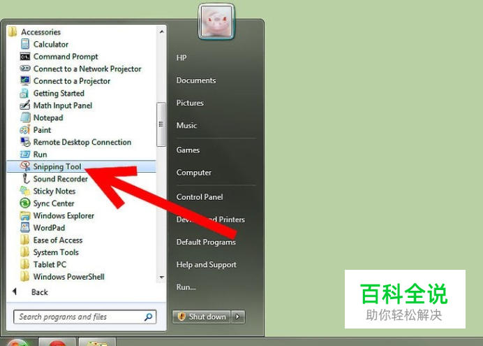 转到“开始” > “所有程序” > “附件” >“截图工具”