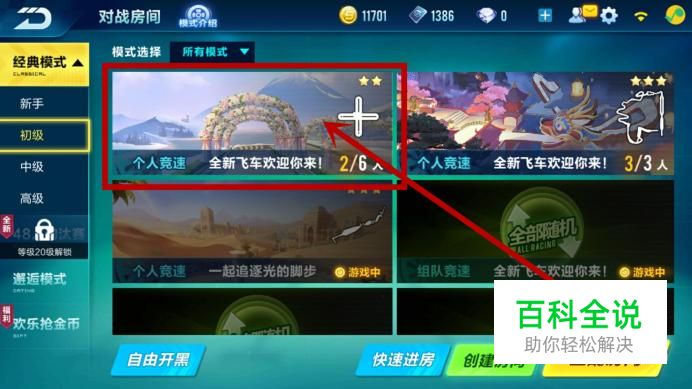 点击匹配房间,选择个人竞速,点击开始匹配并进入,如图所示。