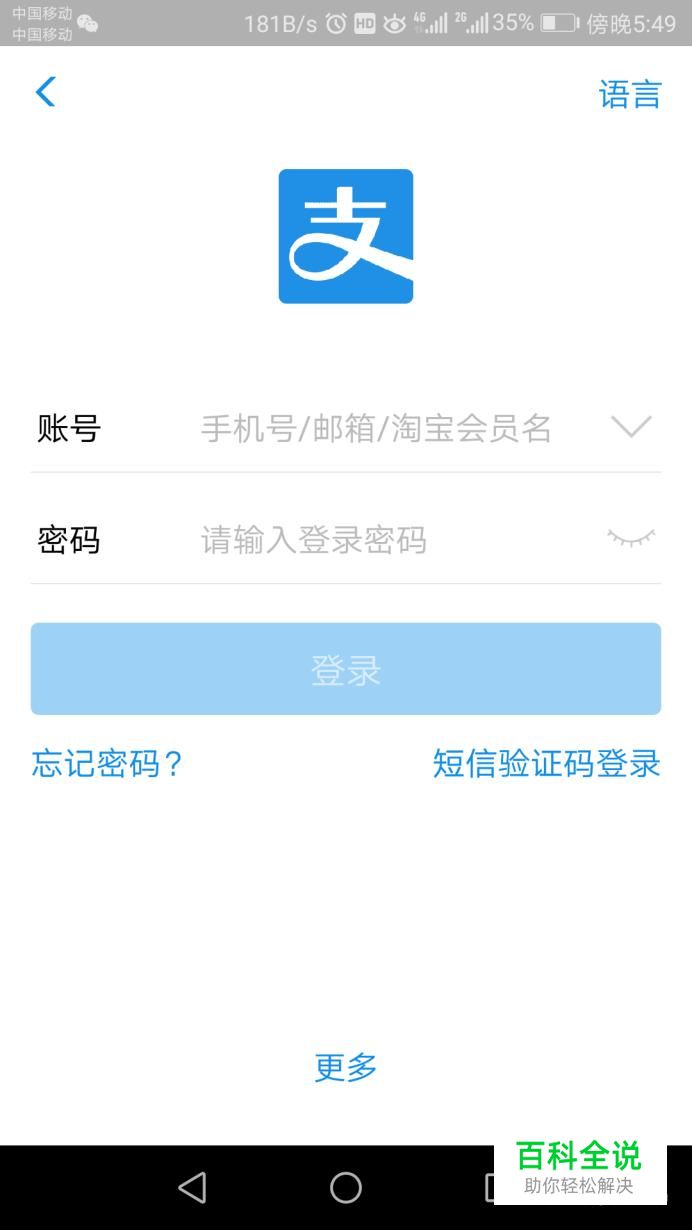 用手机打开支付宝软件,输入账号密码登录,如图所示