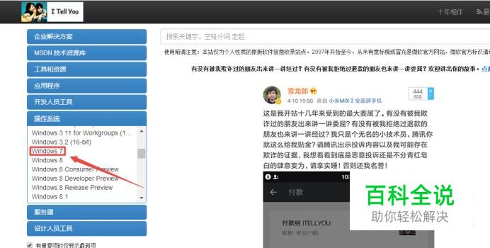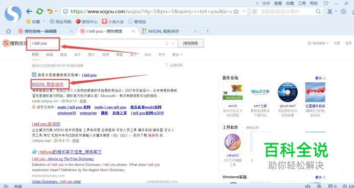 首先我们要进入下载的网址,在搜狗浏览器输入“i tell you”显示如下界面,点击进入“msdn”