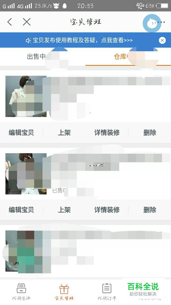 然后再选择下方“宝贝管理”,然后可以选择“详情装修”。