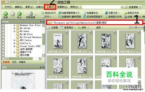 如上图。第一步:选择转换好的单页漫画文件夹。全选所有图片。第二步:点选菜单中的“工具”选项。 调整图像大小(2)