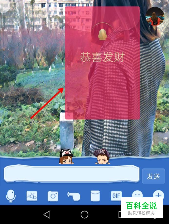 QQ红包在哪里?点击聊天界面,如图,这个像红包一样的标志就是QQ红包,点击一下,就能打开。