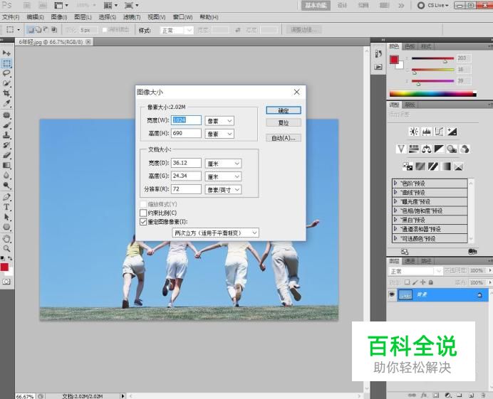 图像大小调整 单击图象菜单,首先选择图像大小,在弹出对话框当中,可以清楚地看到,当前图像的像素大小,文档大小和分辨率,如果想要修改图像的大小,就可以直接在对话框当中进行修改。