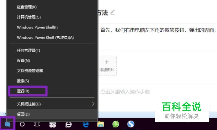 首先,我们右击电脑左下角的微软按钮,弹出的界面,我们点击运行;