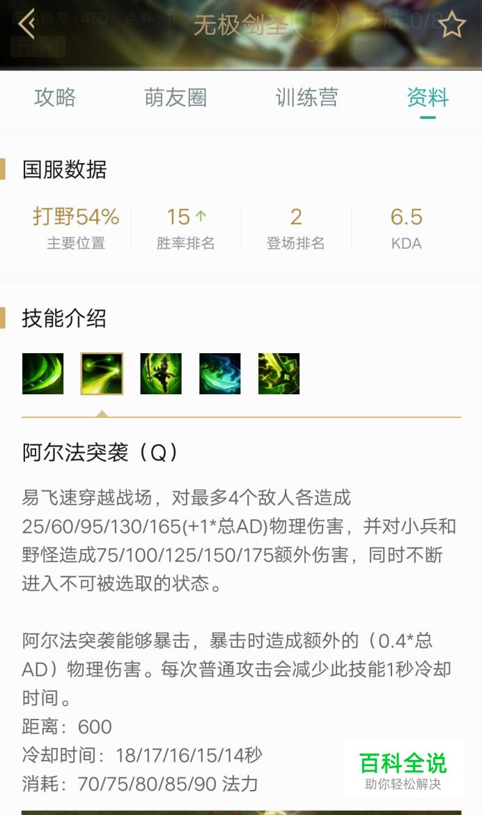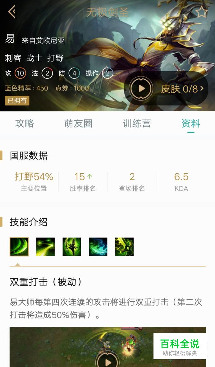 首先技能解析,被动技能:剑圣每第四次普攻连续打击两次,第二次打击拥有一半的伤害。
