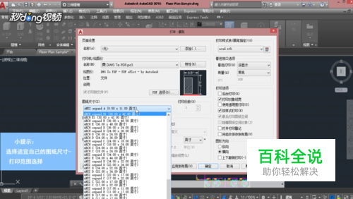 然后选择打印机,选择适宜的图纸尺寸,然后再选择打印范围为“窗口”