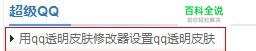 下载qq透明皮肤修改器; 在地址栏里输入wobaqi,点击Enter键,在超级qq一栏里找到“用qq透明皮肤修改器设置qq透明皮肤”一文下载qq透明皮肤修改器。