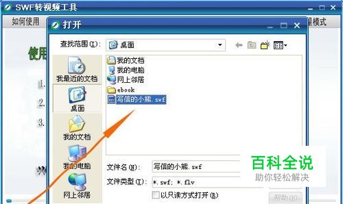 打开工具,如下图,点击左下方的“打开”按钮,将需要转换的swf格式文件打开。