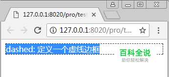 保存html代码,然后使用浏览器打开,即可看到浏览器页面上显示一个虚线边框。