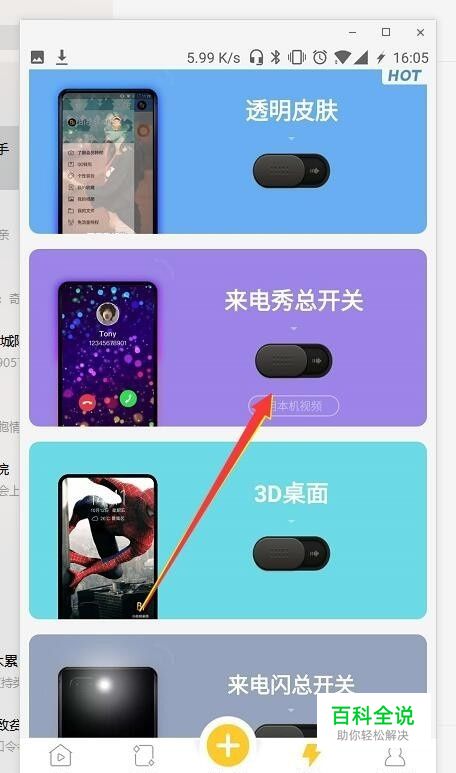 在发现中我们可以向下拖动找到来电秀总开关按钮,这里点击这个开关