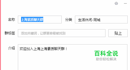 改群资料,包括群名称(做到无公害无敏感词越简单越好,比如上海书法)群标签统统剔除,群介绍和群名称一样。然后保存。