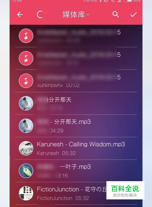 点选第一首需要合并的歌曲,点击后会在歌曲旁边多了个勾,以此类推点选所有需要进行合并的歌曲。点选完毕后点击放大镜一旁的勾。