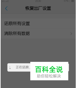 恢复出厂设置里面,有两个选项,一个是还原所有的设置,不会删除个人信息;另一个是清除所有数据。自己按需选择,这里我选择了"还原所有设置“。