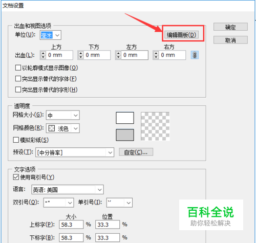 接着会跳出一个对话框,这个对话框主要是配置整个文档属性参数的,我们的目的是创建新页面,所以这个框里的参数暂时放着不管,找到“编辑画板”按钮并点击。