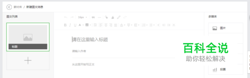 登录你的微信公众平台,新建一个图文消息后页面如下