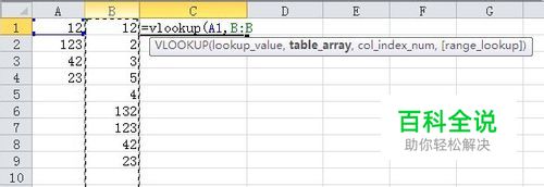 Excel如何查找A列值是否在B列中出现(vlookup)