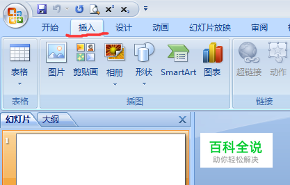 首先打开我们使用的ppt软件。 打开最上面一列的插入选项。