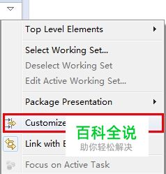 在Project Explorer中右侧有个向下的小三角 ,点击小三角,在弹出框中选择 -->Customize View...