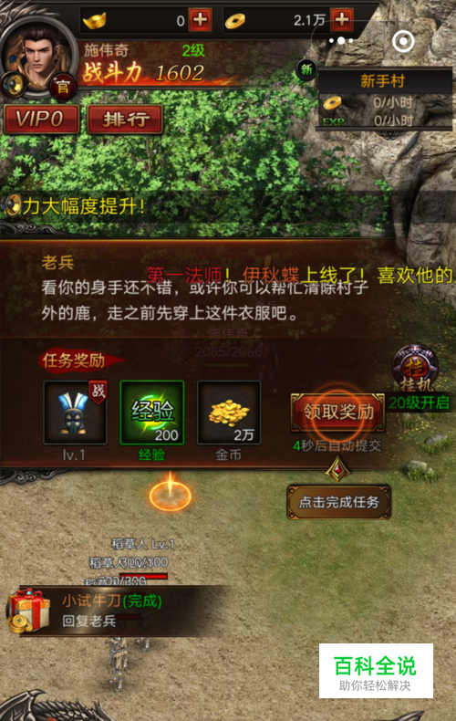 点击下方领取任务奖励,上面暂时只能手动,需达20级。