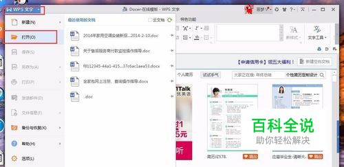 打开WPS软件(新版),点击左上角的那个蓝色的WPS文字按钮,点击打开选项,我选择最近文档来为大家演示下。