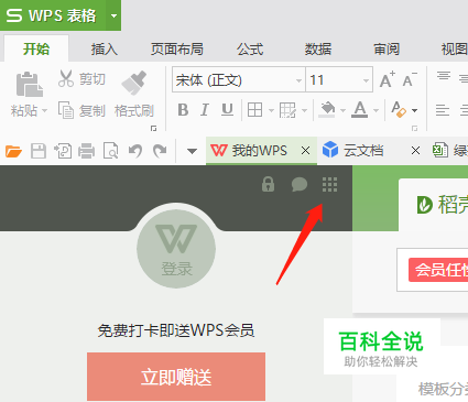 打开WPS软件,可以看到右上角有个“稻壳儿”点击进去(可先登录)