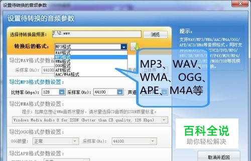 选择转换后的MP3格式 导入视频后,即可进入如下界面。在这里除了可导出MP3格式,其他流行的音频格式如WAV、OGG、WMA、APE、AAC,它一样可顺利导出。