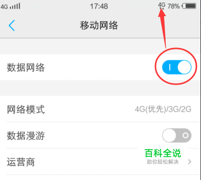 在手机设置中,确定【数据网络】有打开。 注意:手机网络流量是可以使用的,才能进行下面的步骤。