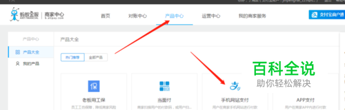 进入市场也没后点击上面的“产品中心”—“手机网站支付”