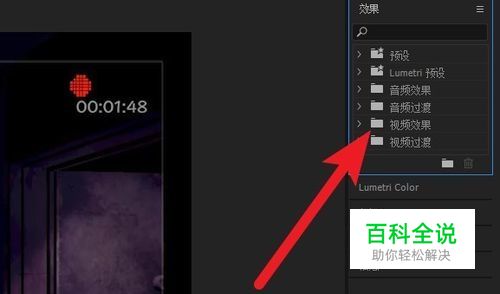 将素材导入到时间轴后选中视频图层,然后点击右侧效果列表中的视频效果。