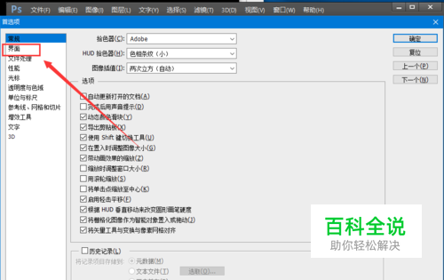 弹出如下窗口点击【界面】
