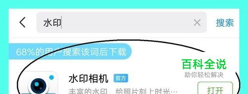 打开手机的应用商城,在搜索栏中键入“水印相机”,搜索下载安装水印相机手机APP。