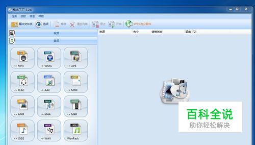 打开“格式工厂”软件,选择左面的“音频”面板,点击打开。打开之后,选择你要转换的格式类型。
